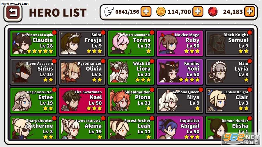 1、各种各样的英雄等着你的召唤,将一个个强大的英雄编入你的小队