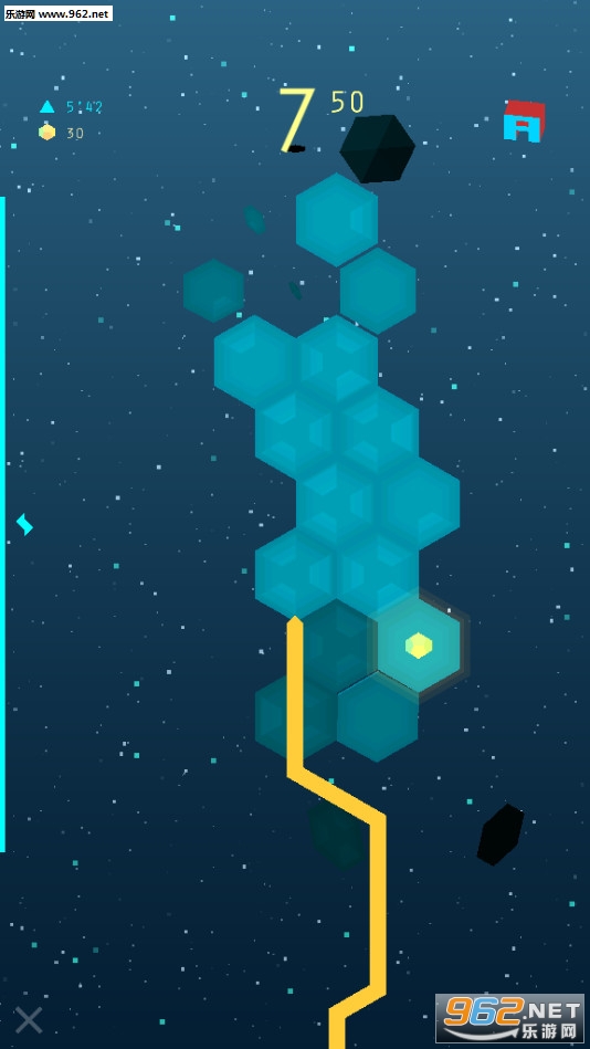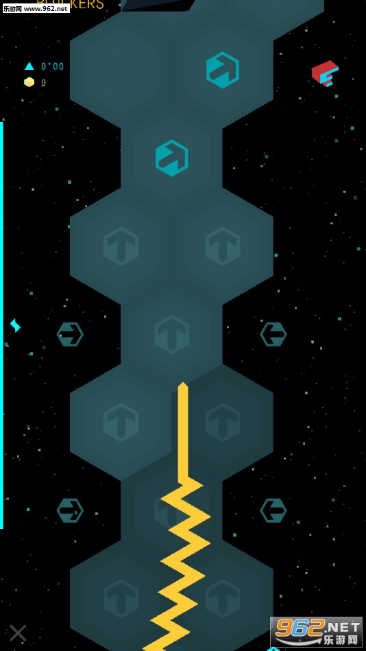 这款游戏其实操作很简单,我们只需要点击屏幕左边,它就会向左转弯。点击屏幕右边,它就会向屏幕右边转弯!我们控制的火箭在一个又一个六边形组成的空间里面游走,然后途中会出现各种各样的阻碍,我们需要准确的控制火箭避开一系列的阻碍,成功越爬越高!游戏操作特别流畅!很不错的一款游戏!