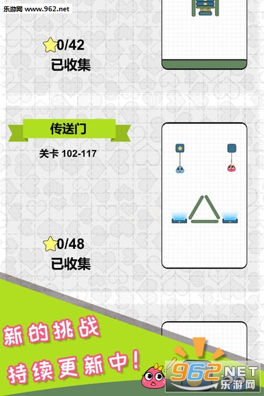 《恋爱三角手游》是一款画面清新的类似割绳子玩法的趣味休闲闯关游戏,游戏中玩家的任务是让两个三角触碰在一起,关卡中带有星星的方块是可以点击敲碎的,需要把握时机来合理的击碎方块,获得更高的评分。