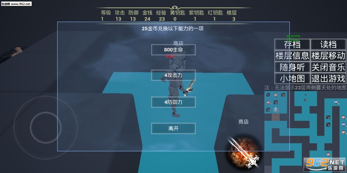 2、游戏战斗数据内容和普通魔塔24层一样,但取消了上21层的时间限制;