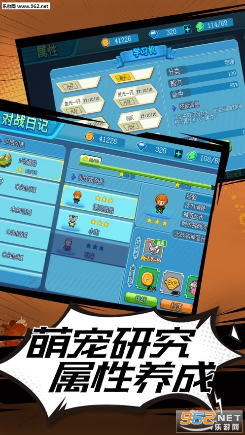3、完美的特效表现,一次次的挑战更强大的道馆主,取得象征着他们的徽章。