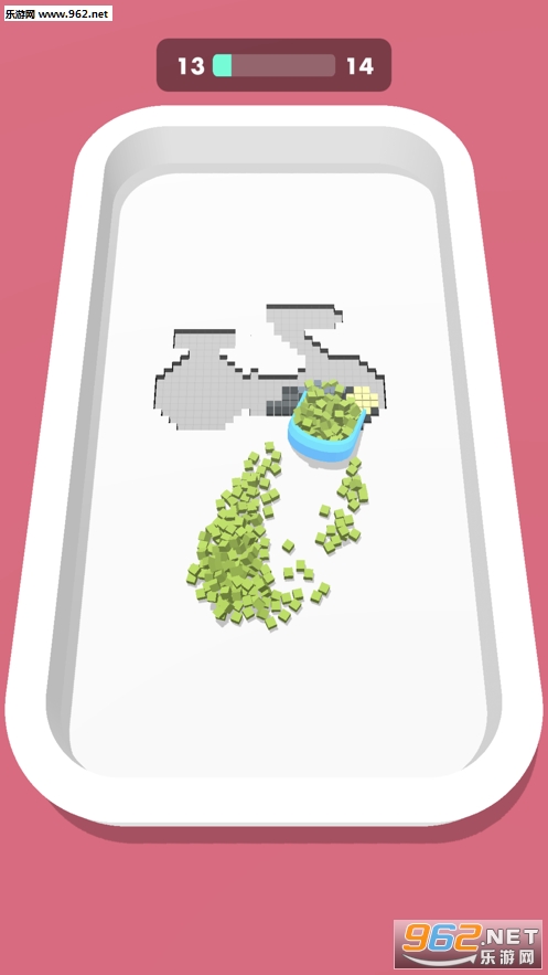 1、在这款游戏中你去收集很多种不同种颜色的小砖块,你要用这些小砖块来拼接成一块完整的图案;