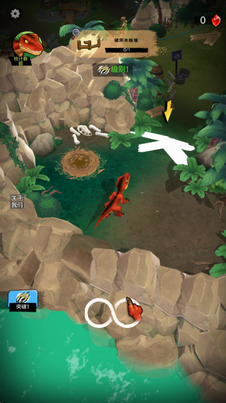 2.使用手指控制恐龙行动,按照任务提示去摧毁木栅栏吧!