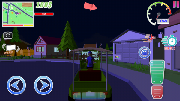 8、驾驶时通过左侧方向键控制转向,右侧油门与刹车按钮调节速度,轻松抵达城市任意角落。