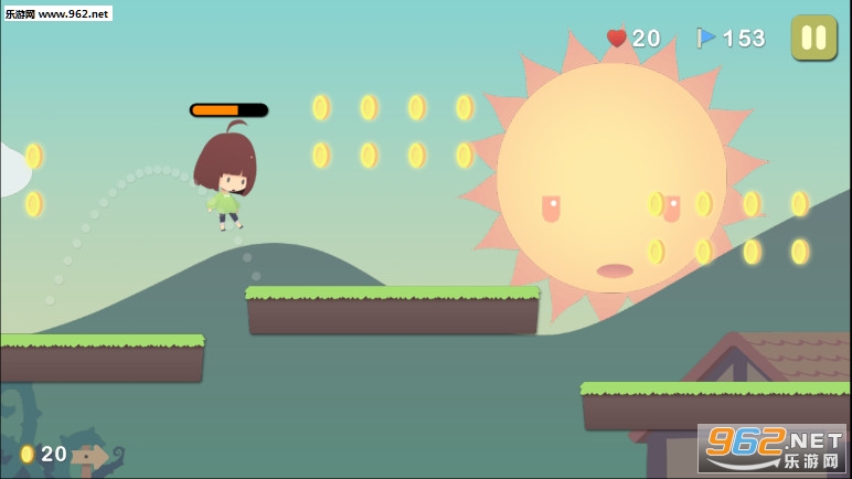 趣味的跳跃游戏,随着进度条的移动人物旁边会有着一个抛物线提示,这就是人物的跳跃轨迹,当然抛物线提示只在开头的部分有,喜欢的朋友可以下载试试。