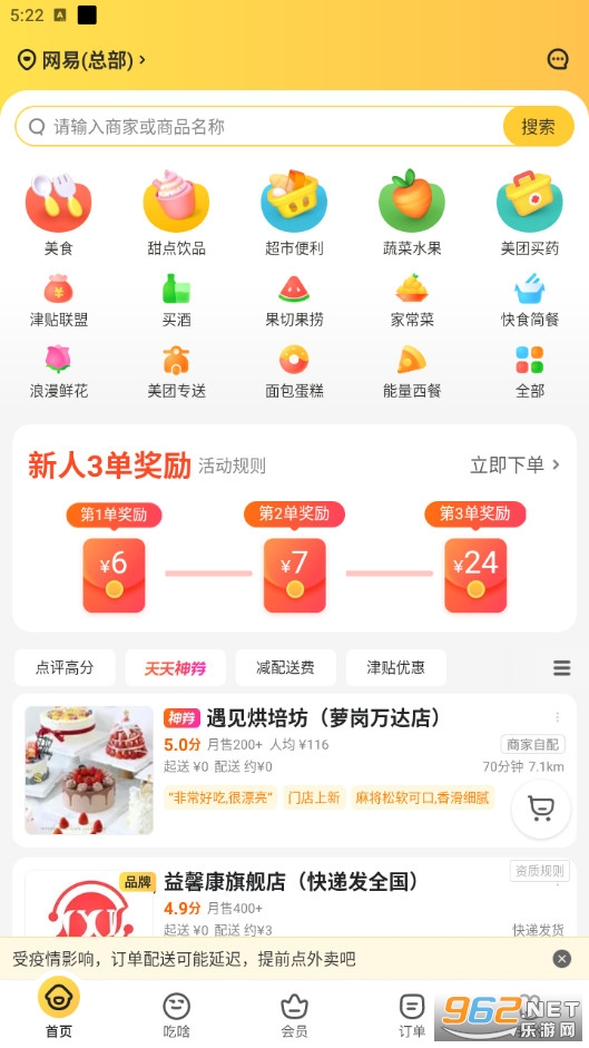 美团外卖是由美团公司打造的一款黄金点餐APP,只需打开APP,软件会自动搜索周围可用的商户,然后将食物信息分类发送给您,您所需要做的就是选择您爱吃的就行!