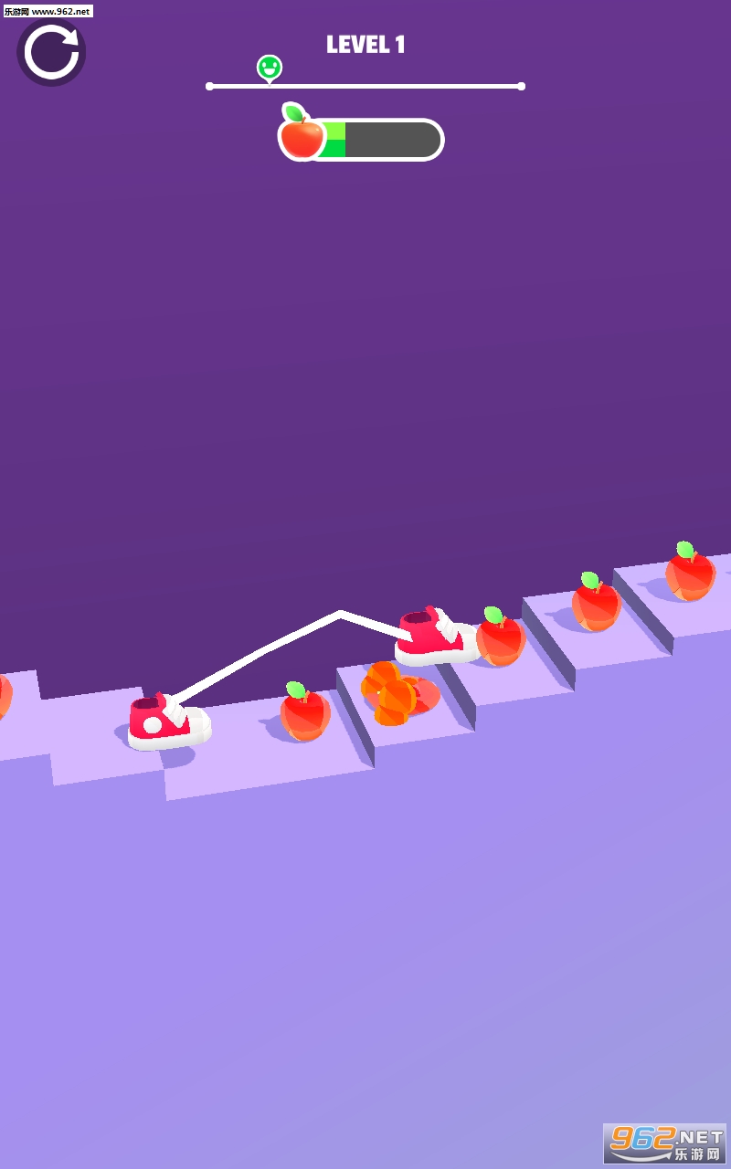 下一步是一款十分魔性有趣的休闲手游,在游戏中玩家将要控制着一双被绑在一起的鞋子,你要做的就是控制着鞋子不断前进,因为被绑在了一起,所以玩家不能够跨太大的步子,你要精准地控制着鞋子踩在地形之中。