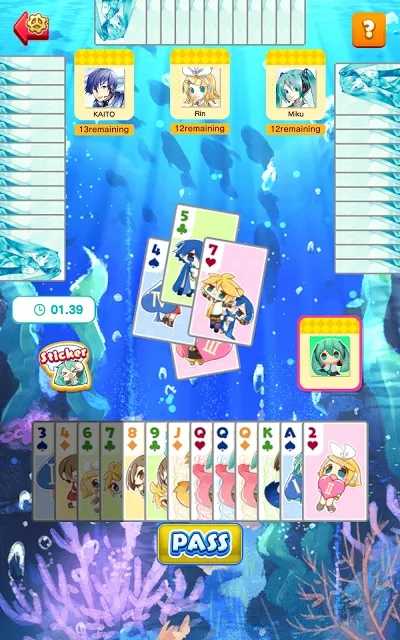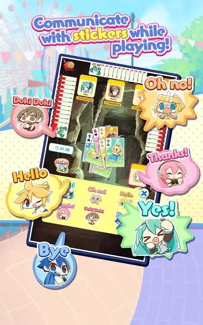 【初音未来一起大富豪】初音未来一起大富豪是一款二次元风格的联机对战游戏,游戏以大富豪玩法为主,玩家可以操控初音未来等虚拟歌姬在线对战,比拼大富豪技术,游戏没有时间限制,只要战胜对手即可获得丰厚奖励,除了联机对战之外,游戏还加入了单人离线模式,玩家即使是一个人也可以体验大富豪的乐趣。