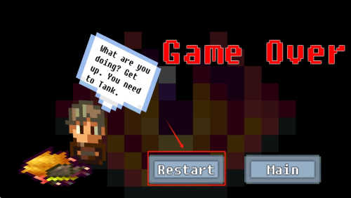 若不幸失败,也无需气馁——点击Restart”按钮即可立即重试当前关卡,继续你的英雄征程。