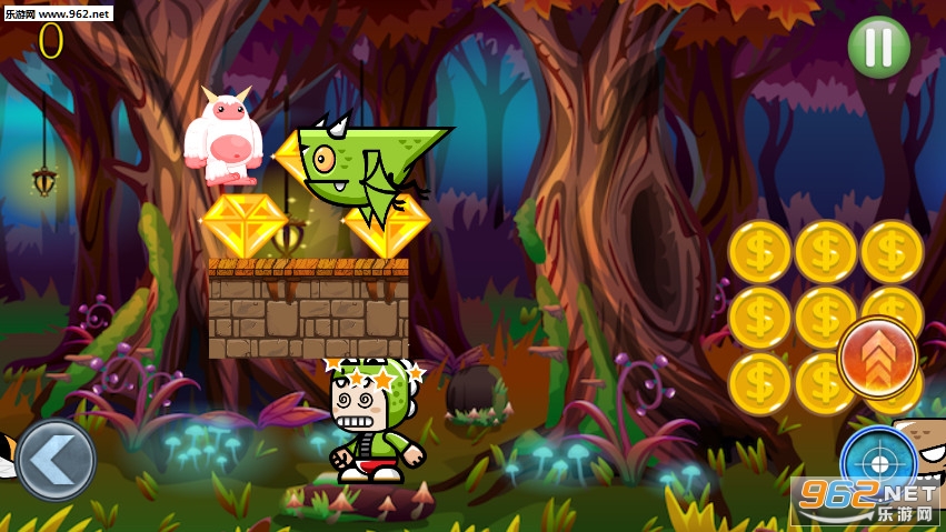 游戏的画面非常的可爱高清,里面的小怪物都丑萌丑萌的,玩法也很简单,就是普通的休闲冒险游戏,尽可能多的吃掉金币和钻石吧