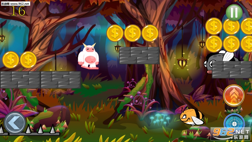 《White Monster Hero安卓版》是一款森林冒险闯关游戏,游戏中玩家要控制一名白色的毛毛怪在森林里面冒险,森林里有很多的怪兽,蜜蜂,大嘴鱼,尖刺等等各种各样的危险,你要小心,你可以发射子弹去攻击那些小怪物,或者是飞起来躲避它们,吃掉更多的金币和钻石。
