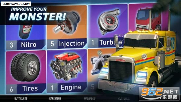 3、各种卡车配件等你来更换,引擎、轮胎、车轴承等等,全部都需要你来进行选择!