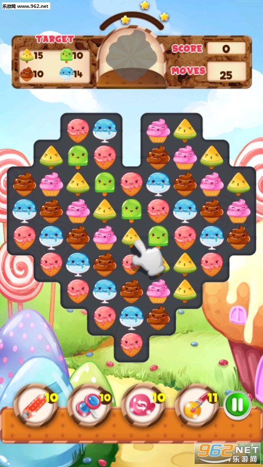 3、交换并匹配3个冰淇淋角色,以进行终极匹配3个益智游戏娱乐。