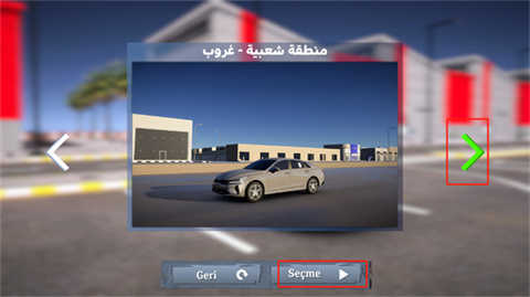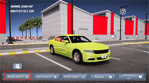 2、在车库界面挑选心仪赛车,点击屏幕左下角的小地球”图标进入场景选择。