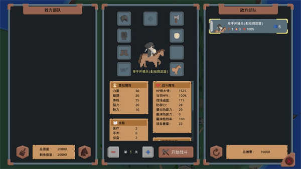 4、浅蓝色士兵为当前可配置单位,灰色需升级解锁,配置完成后点击开始战斗”;