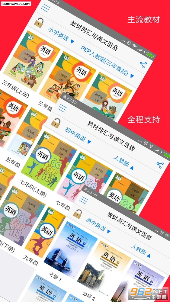 一款自然拼读法全能英语学习和教辅软件,支持主流教材单词点读、播放(英式、美式发音);课文 (均有译文)语音单句点读和全文播放。适合小学丶初中丶高中、大学各年级学员使用。釆用选进的流布局设计,学习者根据自已量身定制和下载教材词汇和课文语音,让手机变成一部真正英语学习机。