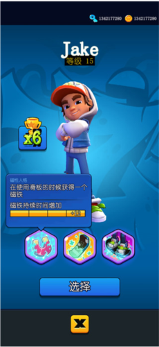 - 磁性人格:使用滑板时自动触发磁铁效果(初始3秒),专注跑酷无需分心捡金币。