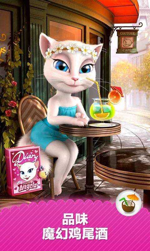 会说话的安吉拉破解版无限金币钻石是一款与《会说话的汤姆猫》十分类似的休闲养成类手游,游戏中的主角是一只十分优雅的母猫,她能够完美的复述玩家的话,同时玩家也能够为母猫进行外观的装扮,你甚至能够让她品尝鸡尾酒、跳舞、打开礼物等等,享受和美丽猫咪的互动过程,游戏经过破解处理,玩家拥有无限可以使用的金币和钻石,这样你就能够尽情的购买各种装饰了。