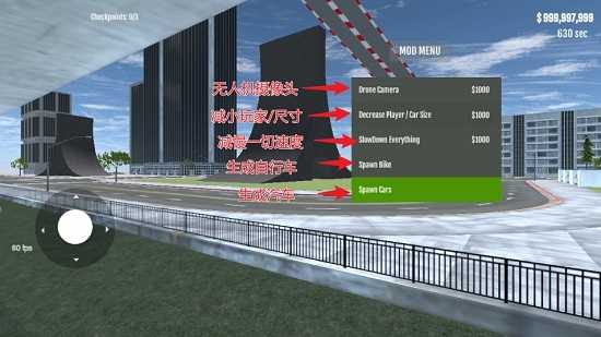 4、这里正式进入到游戏内的画面了,在游戏画面中你会看到一个MOD MENU的小图标,点击它,选择自己要修改的功能即可。