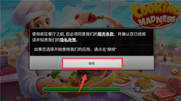 1、点击红色框框里的继续并进入游戏。