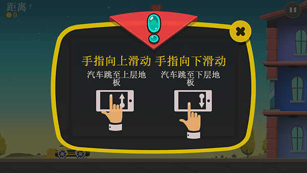 1、第一阶段手指向上/下滑动,即可操控汽车跳至上/下层地板,以避免前方出现的障碍。