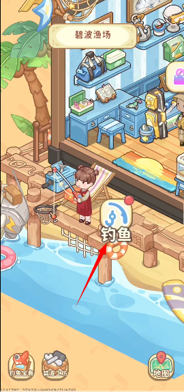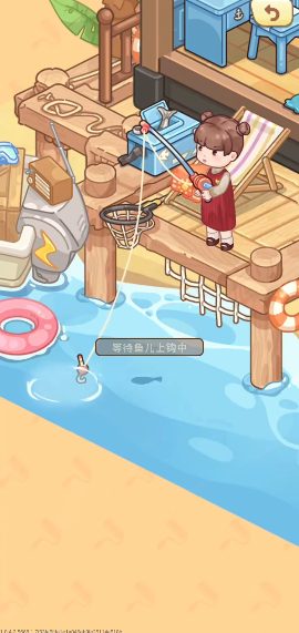 除了核心装修经营,游戏还内置休闲钓鱼玩法。前往指定地图如碧波鱼场”,点击钓鱼”即可开始。抛竿后耐心等待鱼咬钩,当提示出现时迅速点击收杆。关键在于把握时机——屏幕会出现蓝色判定光圈,只要在光圈范围内完成操作,即可成功钓起鱼类。该玩法不仅放松解压,还能获取额外资源。