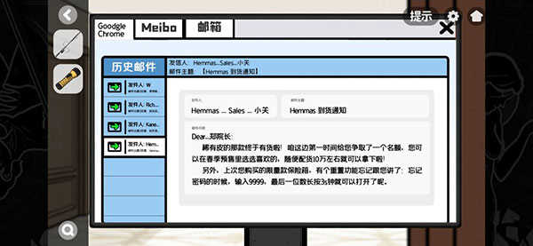 连接电脑Wi-Fi后,搜索并登录meibo账号(验证码5462),确认手机号后四位为9020,补全电话为1823979020;随后登录邮箱,通过安全问题验证,获取保险箱密码提示:9999,最后一个9需长按3秒”。