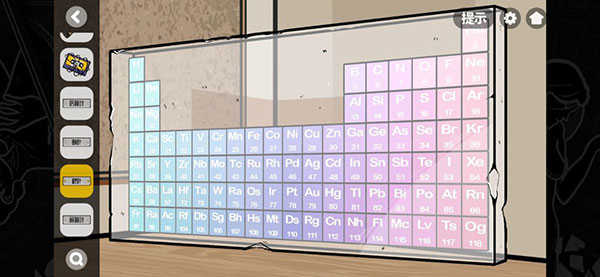 将铭牌正确悬挂后获得-1”电梯按键;用手电筒照射元素周期表,按顺序开启暗门;安装-1键后乘电梯抵达负一层,正式进入下一章节。