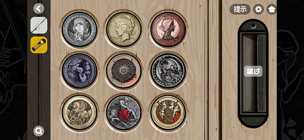 前往会客厅,获取幕布并将卡片与桌上碎片拼合,还原Tarustar”字样;点击窗外取得线索1。接着在另一场景中,用Tarustar”打开抽屉,获得遥控器及9张明信片(线索2)。