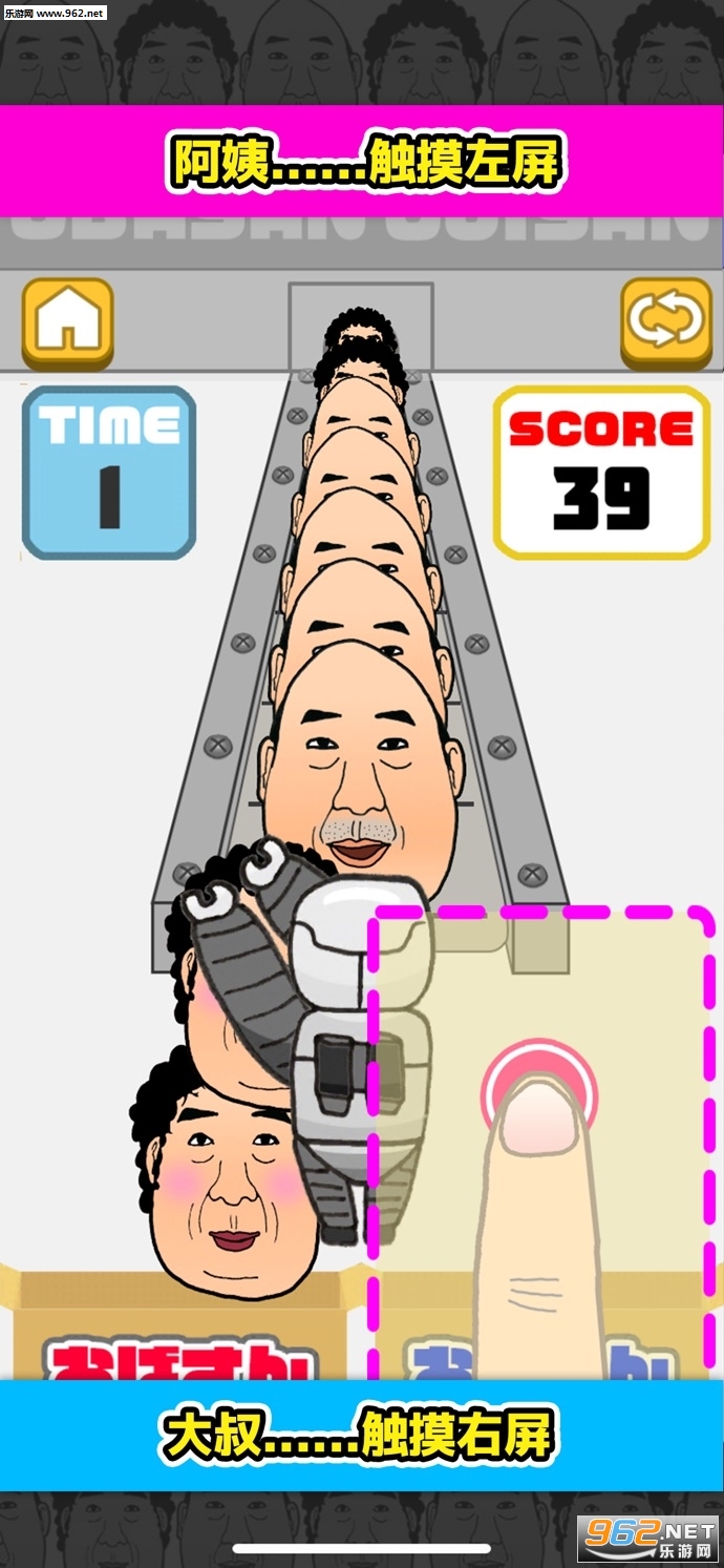 总体来说是一款超魔性搞笑的休闲游戏,充满着敏捷点击的乐趣,操作的方式十分的简单,左边是阿姨,右边是大叔,点击出现的人脸进行区分,挑战更好的成绩和更加的手速,喜欢的亲们赶紧下载吧。