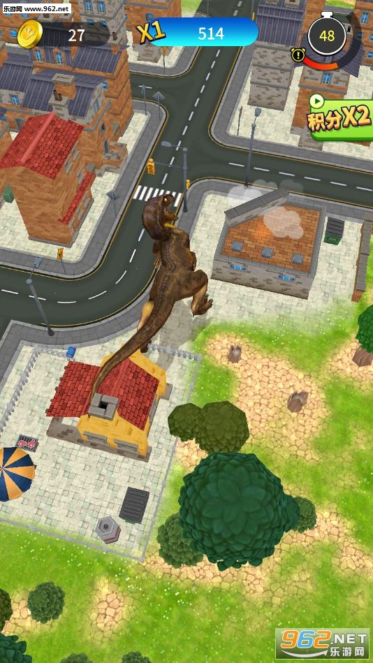 3、没有任何的规则和技巧,操控恐龙横冲直撞,让破坏来的更激烈。