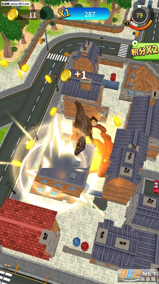 2.进入游戏后只需要手指滑动屏幕即可,控制恐龙的移动方向来破坏更多的建筑物获得高额的分数,