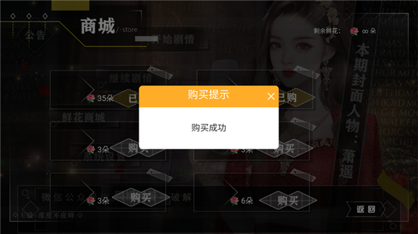 3、由于本游戏已经成功破解无限鲜花,我们可以打开鲜花商城直接购买超级大礼包、番外合集、属性优化等物品。