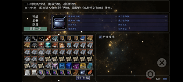 获得方法:暮星城剧情中在城主府对话厨师后有个小剧情,让你去铁匠铺拿铁锅,但有的人点的太快了会漏了文本剧情导致不知去哪拿铁锅。(去铁匠铺需要带一块精铁结块,可以在橄榄山矿洞或特雷西亚矿洞中购得,或也可通过用矿石提纯器获得)