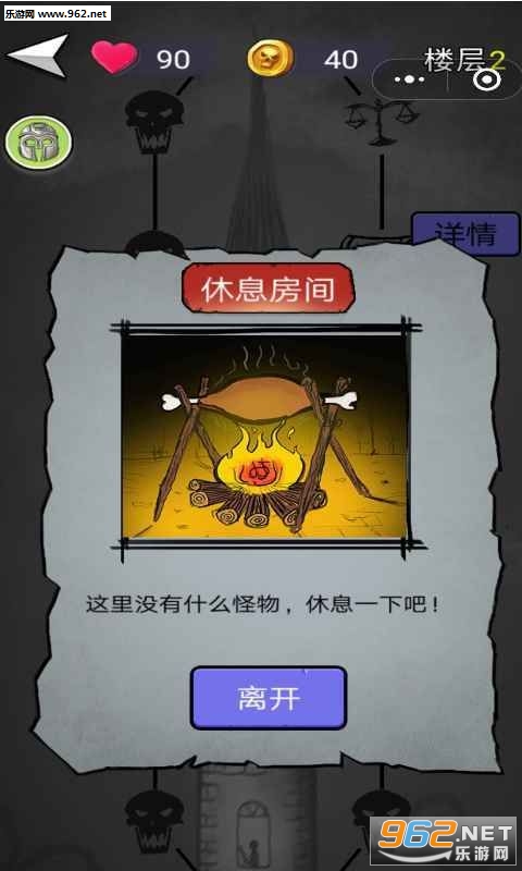 1、你的角色是由生命值上限的,可以再冒险途中的休息房间中恢复一定的血量,保证你的生命安全。