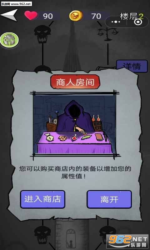 2、击杀怪物可以获得金币。随机进入一层塔中,极有可能遇到商人可以购买装备或者其他道具。