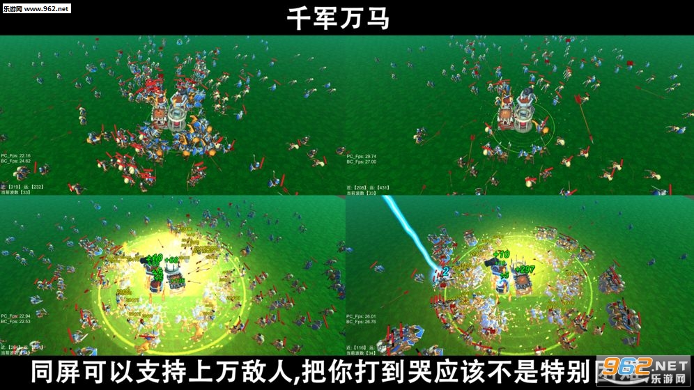 目前是中间4个塔,几百 几千的怪户压压冲过来,