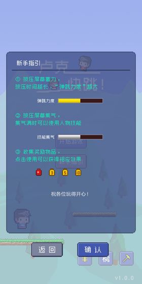 2、操作上也同样非常的简单,按住跳跃键根据按住的时间进行蓄力,按的越久跳的越高,通过方向键调整方向