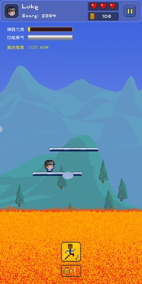 3、每次向上跳跃后会给人物增加能量点,当能量条满后就能使用人物的技能了。