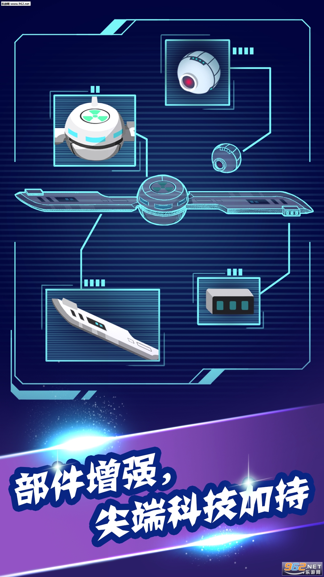 全新的医疗纳米机器人由5大组件组成,不同部件决定机器人的不同性能,升级部件提升机器性能。