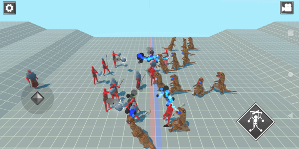 4.如下图所示,战斗开始之后士兵们会自动战斗。玩家可以点击画面右下的按钮,化身成为小兵加入战斗。