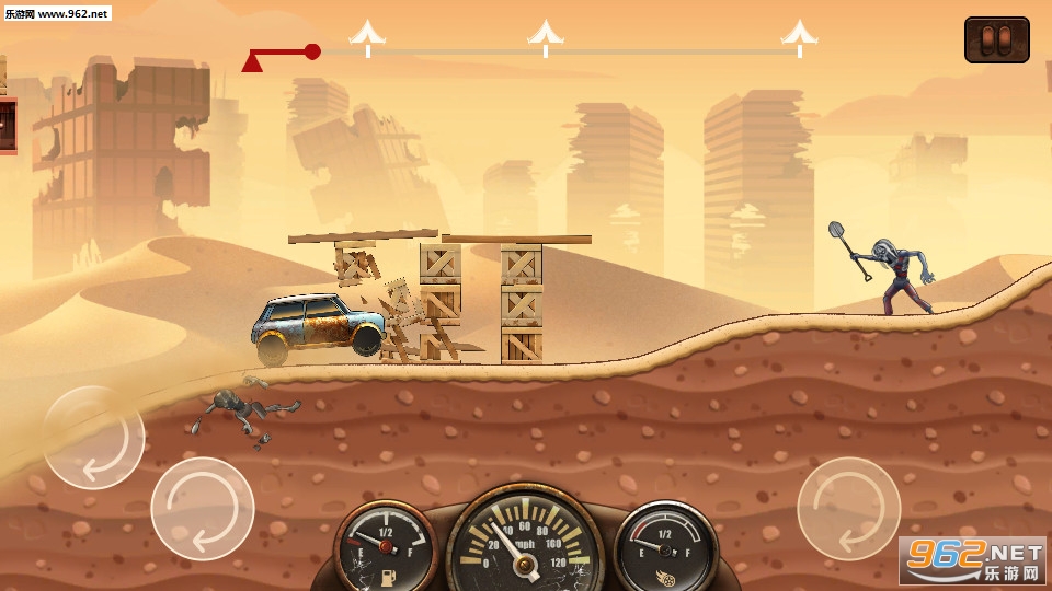 《越野僵尸飞车手游》这是一款非常刺激热血的越野赛车撞击类休闲手游,游戏采用2D横版风格设计,游戏中,玩家需要驾驶越野赛车在满是僵尸的道路上行进,不断撞击击杀各种僵尸,获得奖励和金币,注意车辆油量的耗损,完成挑战任务。