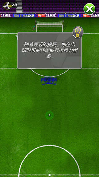 1、玩家可以通过新星足球教程选项进入练习模式,学习操作游戏,轻触足球,通过拖拽瞄准方向,然后放手;