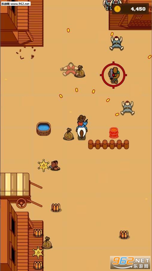 游戏以西部牛仔的画风设计为主,采用了动作射击的玩法,一只手就能操作,很容易上手,玩家可以在游戏中通过简单的玩法,感受单纯射击的乐趣!