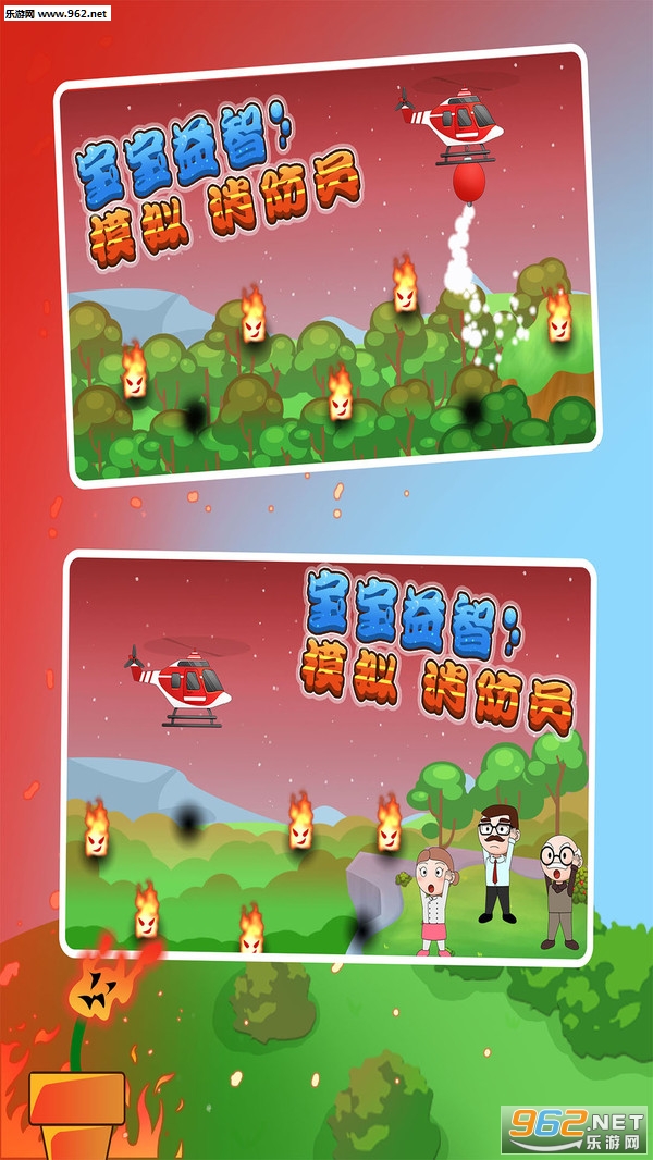 游戏通过消防员扑灭火灾的场景,帮助孩子了解消防员的灭火工作,内容显示救火英雄消防员面对的困难和挑战,让孩子有社会责任感,提高孩子对火灾的安全防范意识,对孩子成长的过程非常有帮助,寓教于乐。