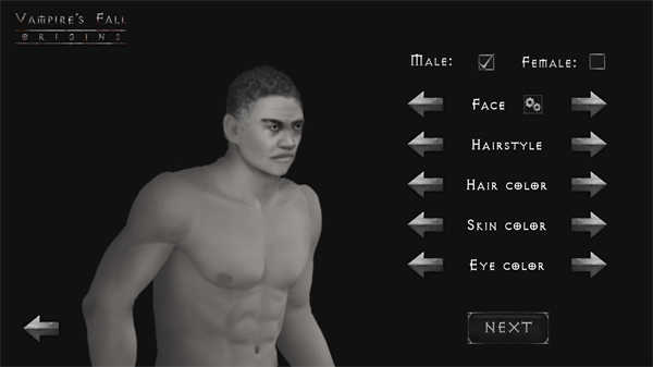2、首次进入游戏需要设置角色的形象,可以为自己的角色设置发型、肤色以及瞳孔颜色等,点击NEXT进入下一步。