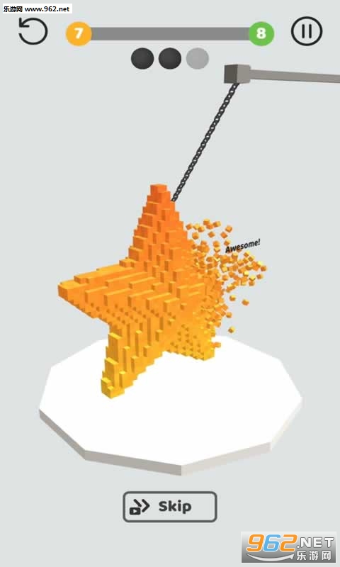 一款休闲游戏,整体的画风清新舒适,玩法简单,在这里你需要控制摆锤敲击的方向和力量,想办法将关卡中各种各样方块塔击碎,同时也容易让自己利用游戏来发泄。