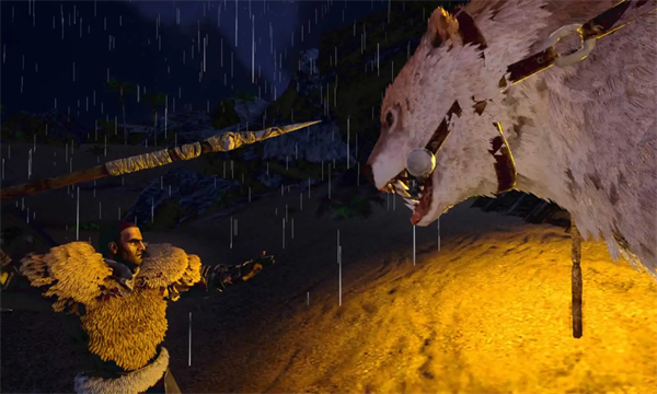 接下来准备阶段到此结束,接下来找到自己想要驯服的恐龙,然后使用拳头,棒子这种钝器来不断攻击恐龙,切记不要使用弓箭这种锐利的武器。