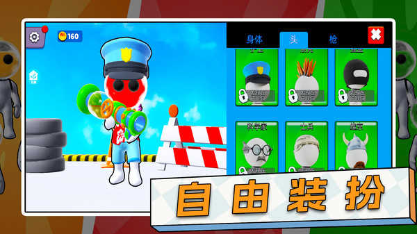极速开打,笑点密集! 每局仅需3分钟,节奏紧凑不拖沓,随时随地来一场见面就干”的爆笑对决。无厘头武器系统+随机刷新道具,让你和队友在混战中上演友伤互坑”的名场面。被击中后角色不仅全身染色、肢体扭曲,还会触发夸张慢镜头击飞特效,喜剧感直接拉满!