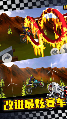 《摩托车特技王》和你过去玩过的任何摩托车或车辆竞速游戏绝不相同!